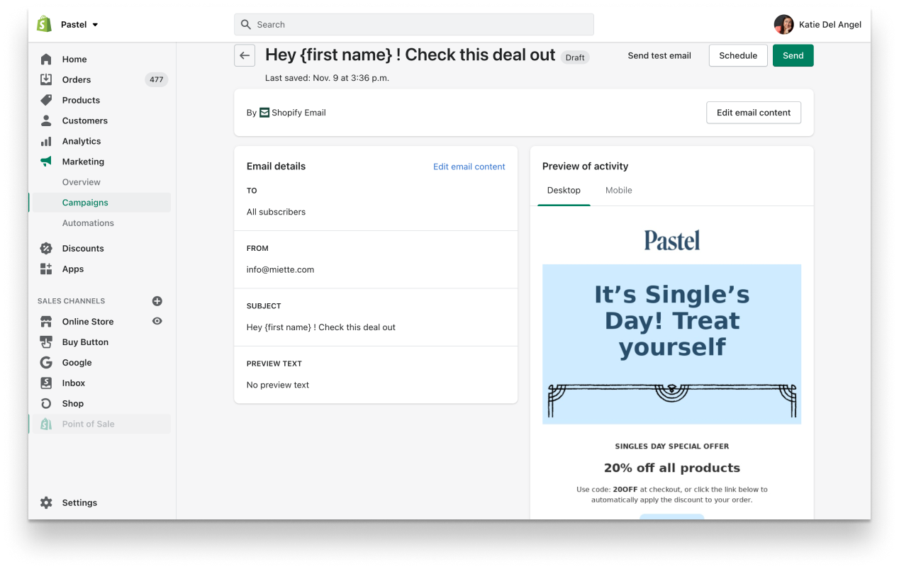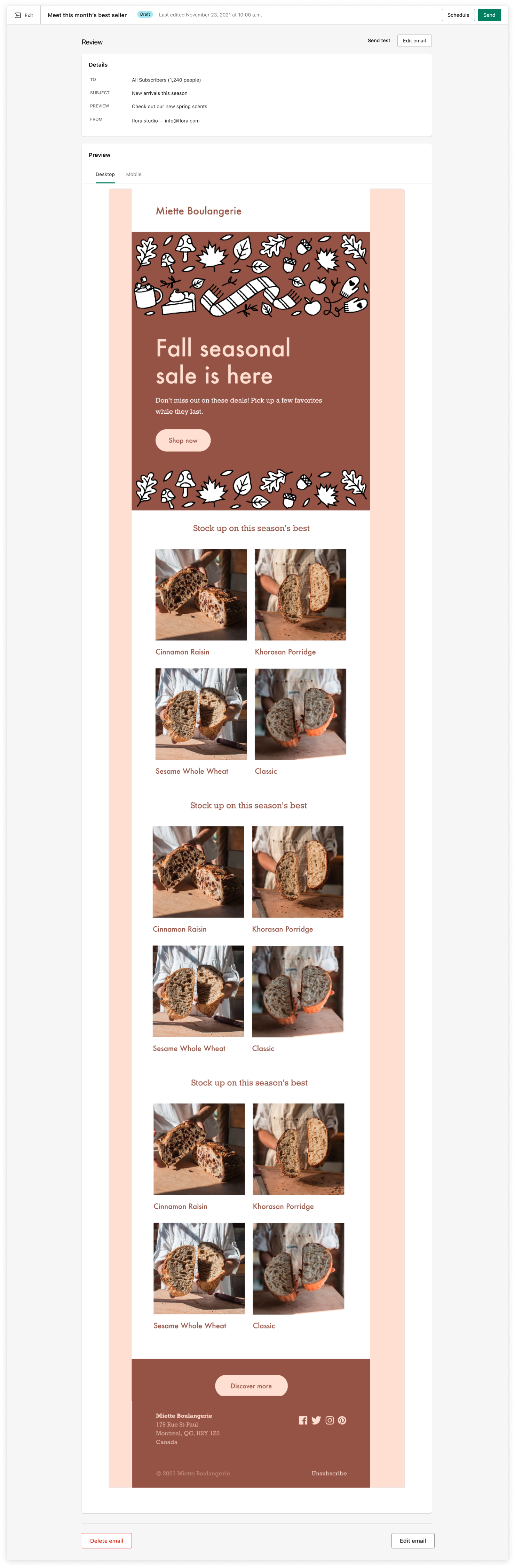 Now, Shopify Email has a brand-new review page, with an emphasis on reviewing and sending email.